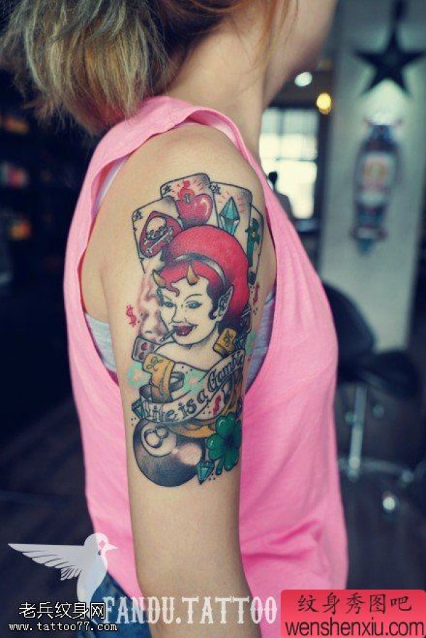 女性手臂彩色魔鬼女郎文身作品