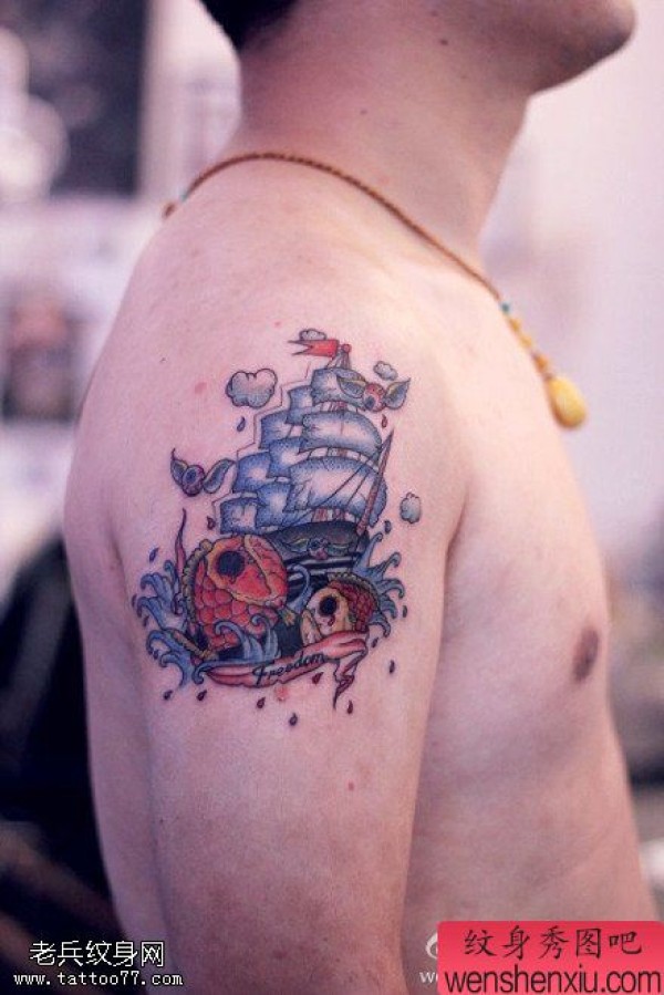 手臂帆船鱼文身作品由纹身图吧分享
