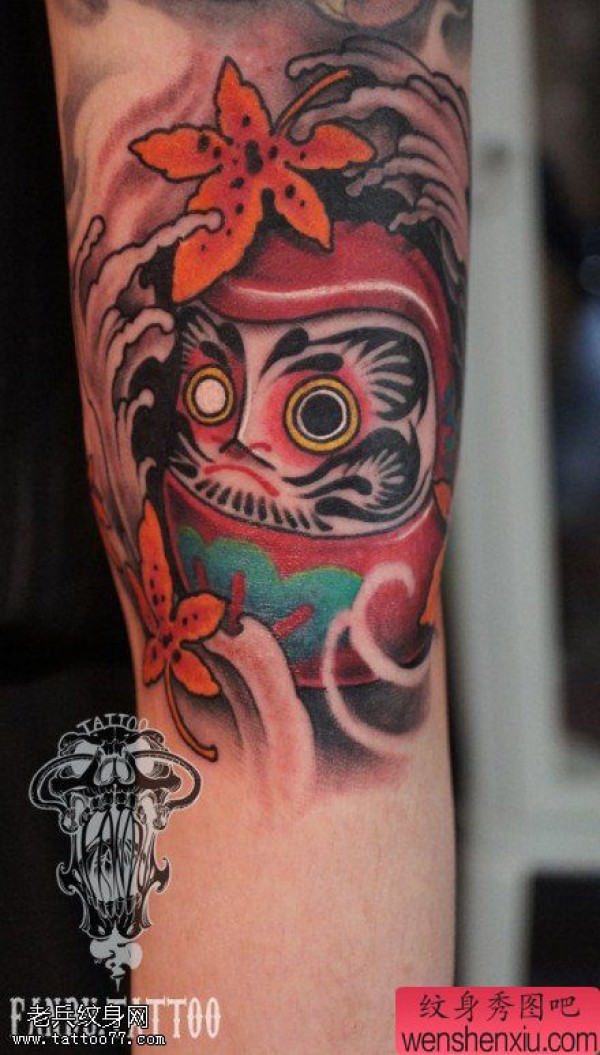 手臂彩色达摩文身作品由纹身图吧分享