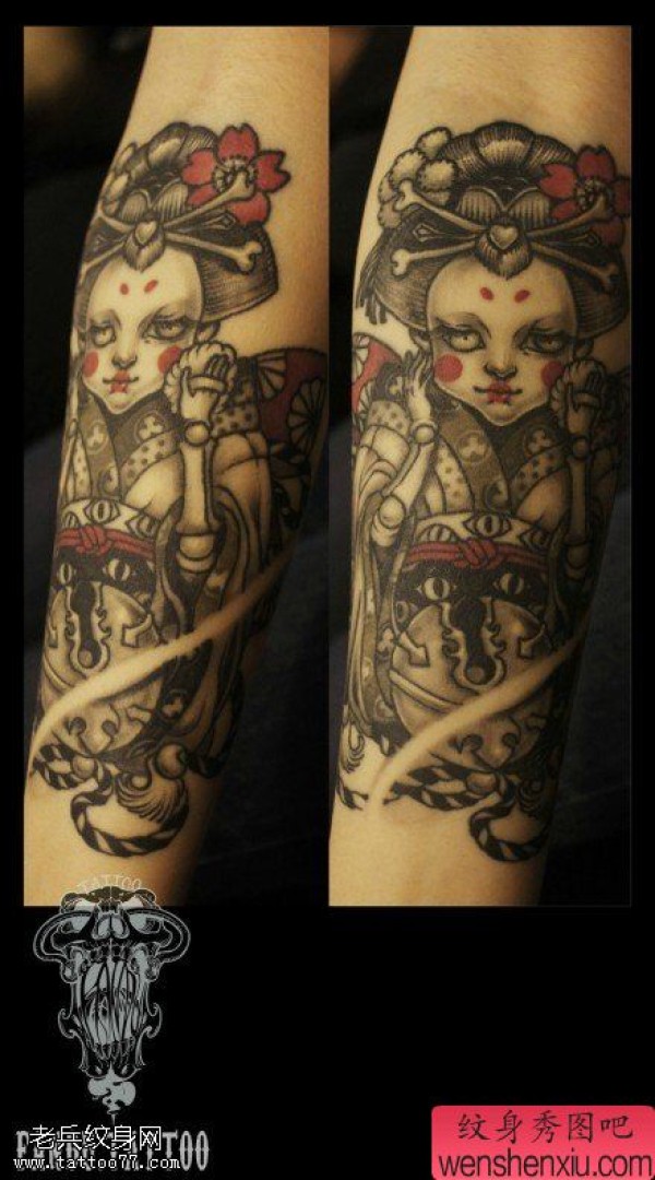 腿部创意傀儡娃娃文身作品由文身馆分享