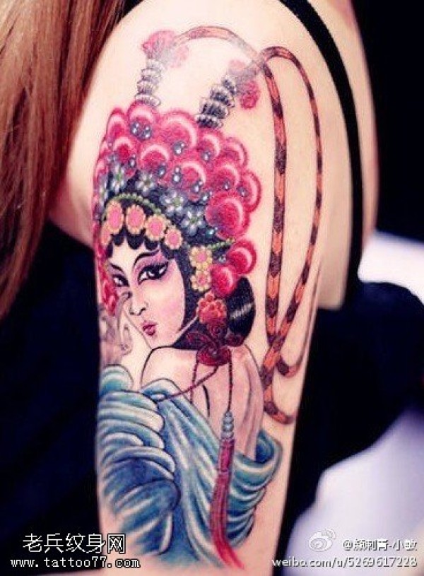 纹身图吧分享一张手臂彩色花旦文身作品
