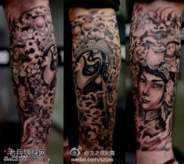 传统花腿纹身--18张传统风格的大花腿纹身图案作品