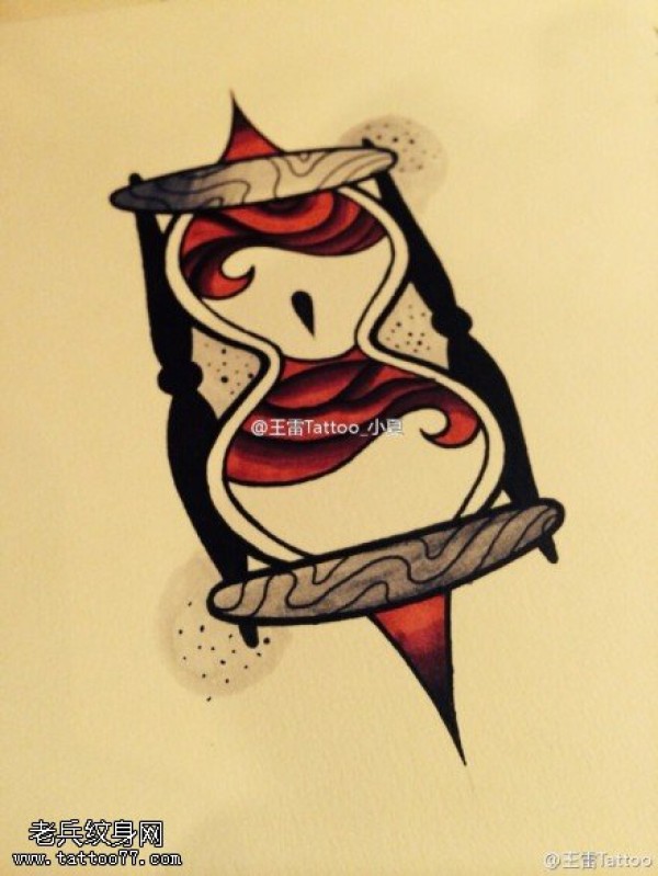 纹身图吧分享一张彩色沙漏文身手稿作品