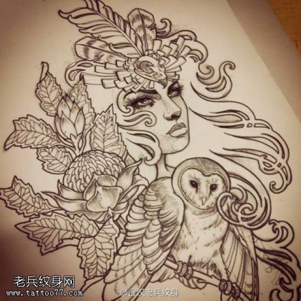 一套黑白女郎肖像文身作品由纹身图吧分享