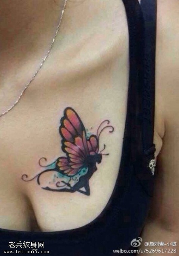 女性胸部彩色精灵文身作品由文身分享