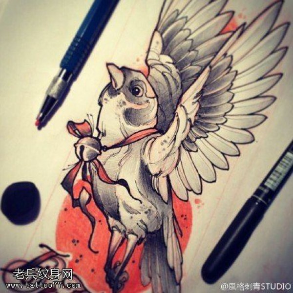 纹身图吧分享一张和平鸽文身手稿作品