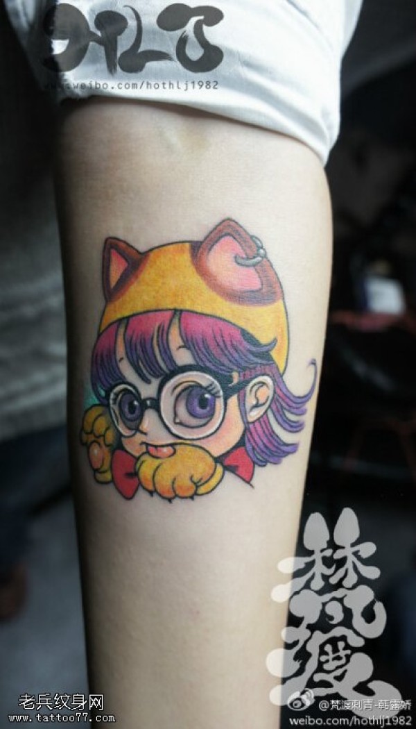 手臂彩色阿拉蕾文身作品由刺青店分享