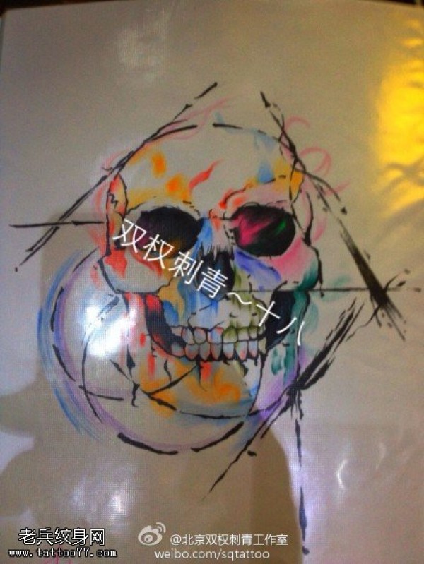纹身图吧分享一张泼墨骷髅文身手稿作品