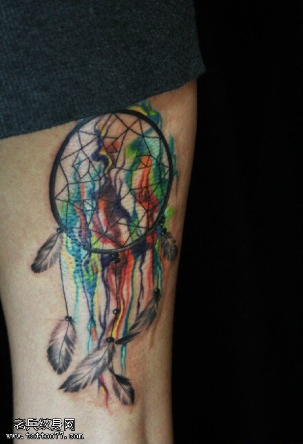腿部彩色捕梦网文身作品由文身分享