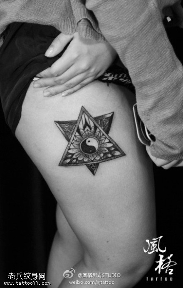 女性腿部三角形眼睛文身作品