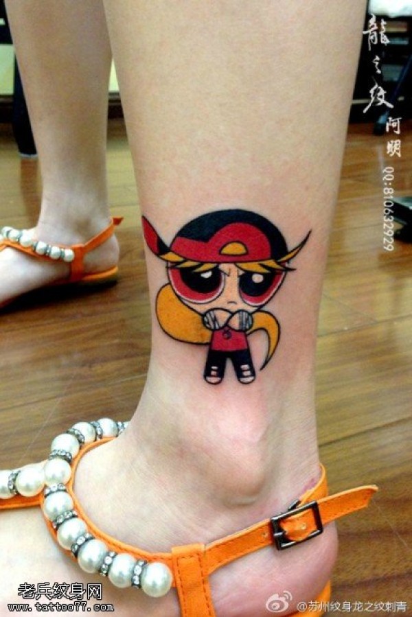 女性腿部彩色飞天小女警文身作品