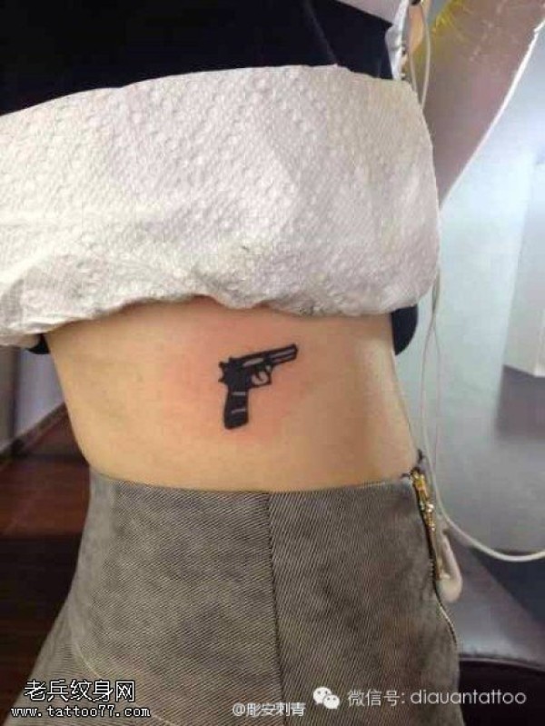 女性腰部手枪文身作品由刺青馆分享