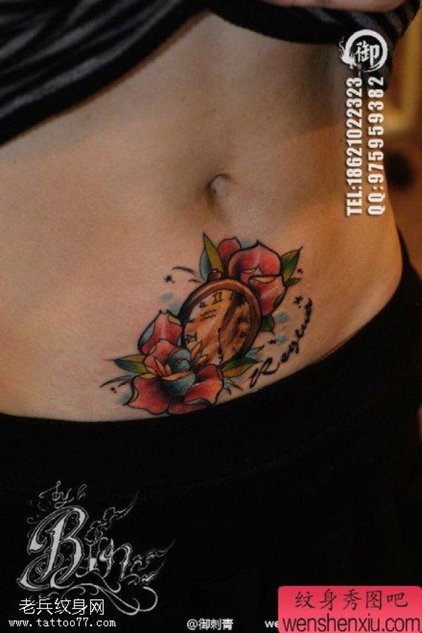 女性腰部莲花花纹刺青_腰部纹身图案大全_纹身图吧