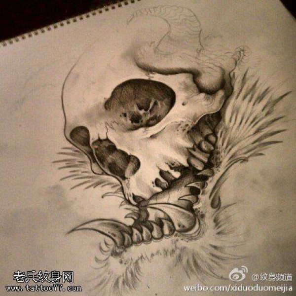 龙纹身手稿_一组老传统黑灰龙手稿纹身图案