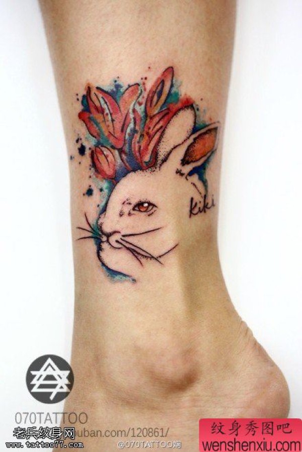 女性脚踝彩色兔子文身作品由纹身图吧分享