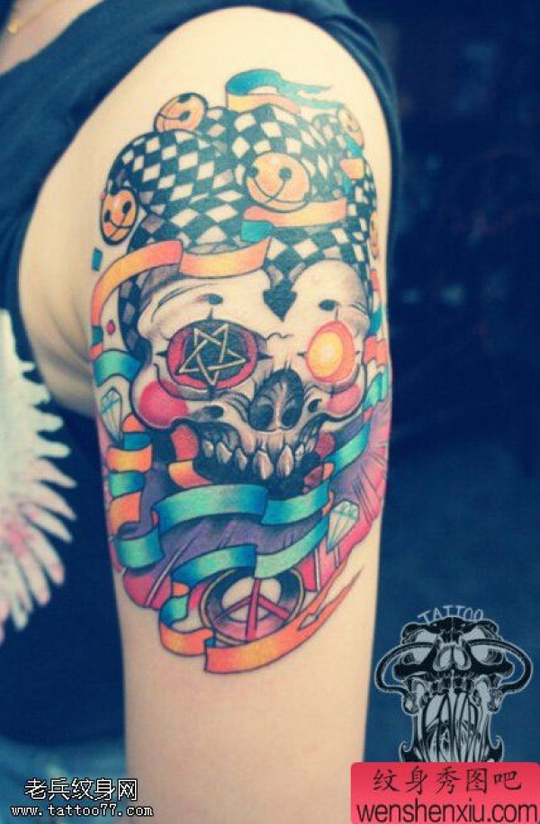 手臂骷髅小丑文身作品由文身馆分享
