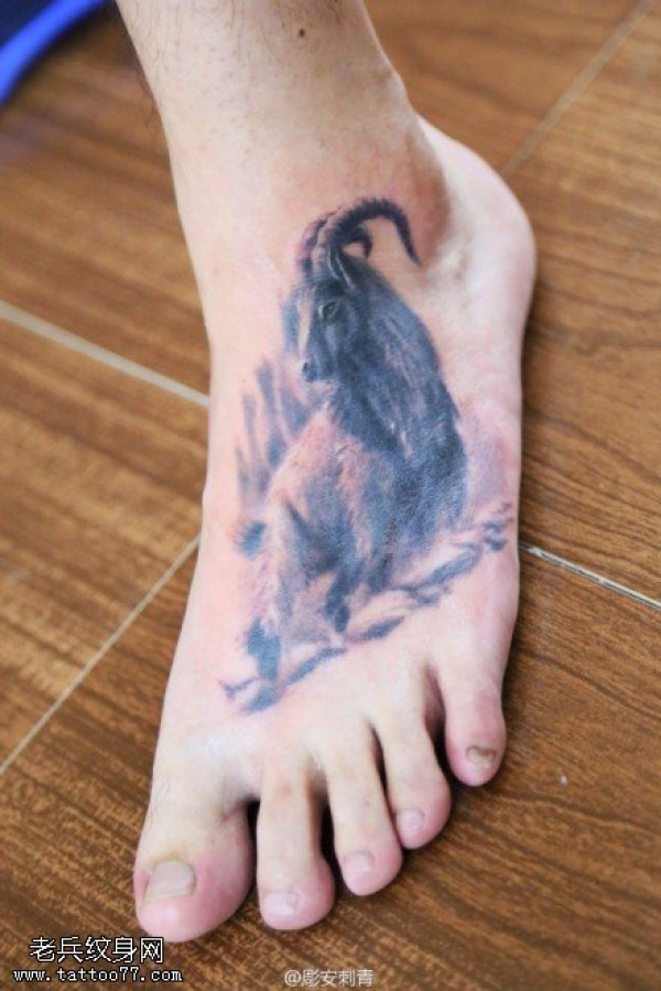 脚背羚羊文身作品由最好的刺青店分享