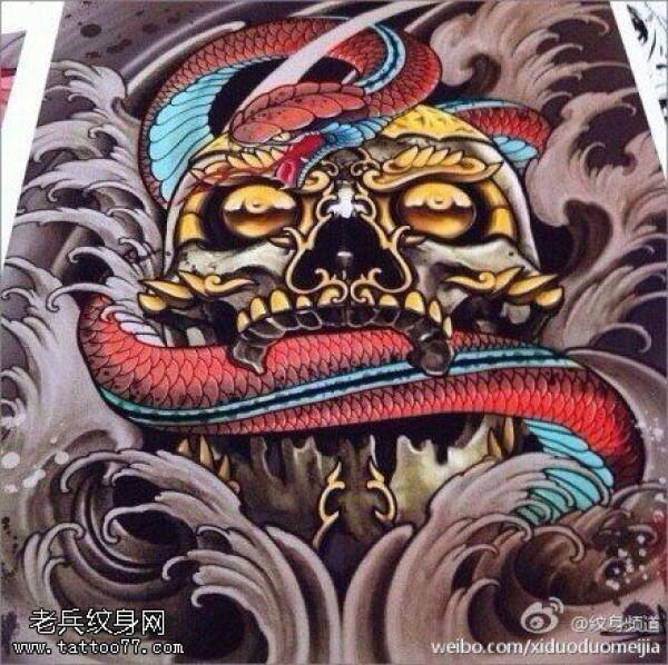彩色嘎巴拉龙文身手稿作品由文身分享