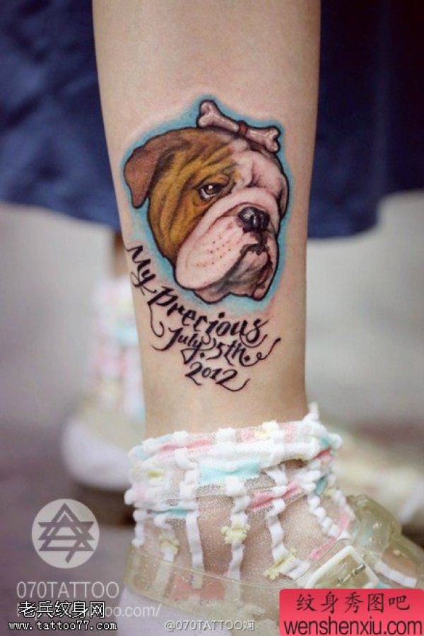 女性脚踝汪星人文身作品由文身分享