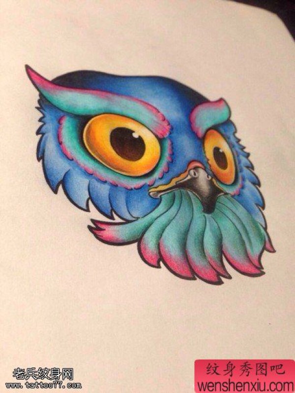 彩色猫头鹰文身手稿作品由纹身图吧分享