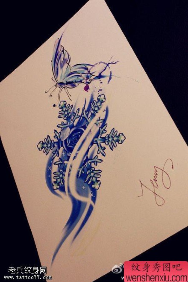 纹身图吧分享一张雪花蝴蝶文身作品