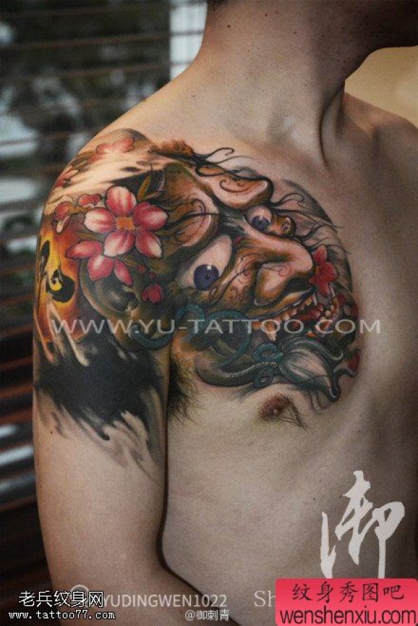 女生肩花纹身_15张女性双肩对称的肩花纹身图案作品图片