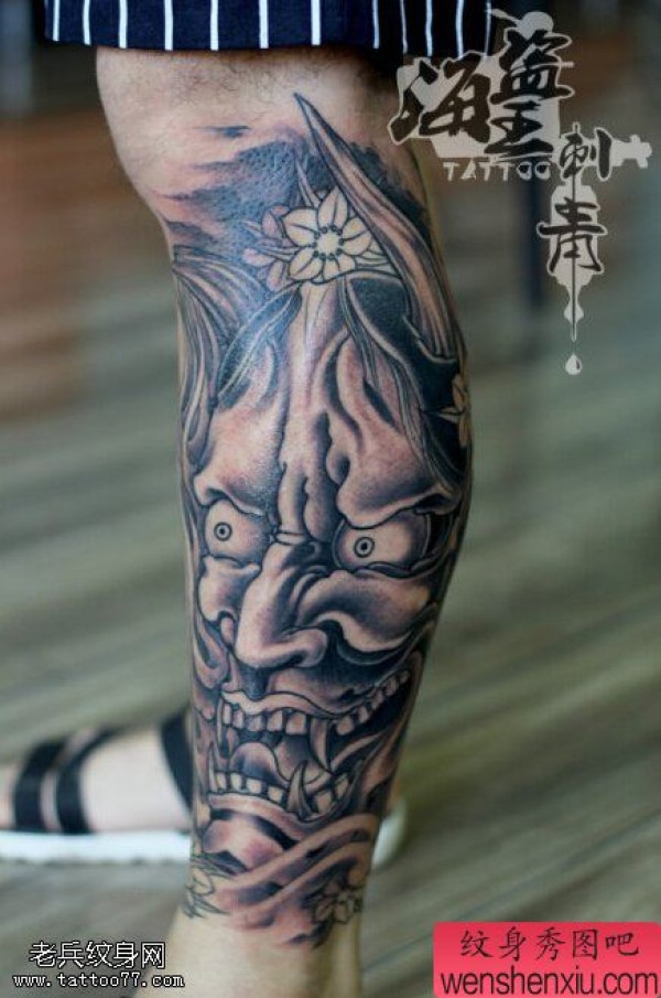 腿部传统包小腿般若文身作品由纹身图吧分享
