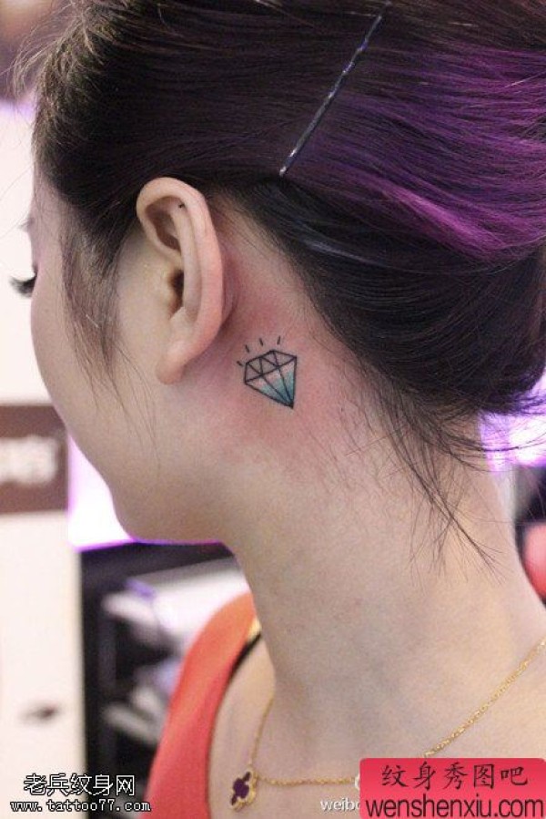 纹身图吧分享一张女性耳后小清新钻石文身作品