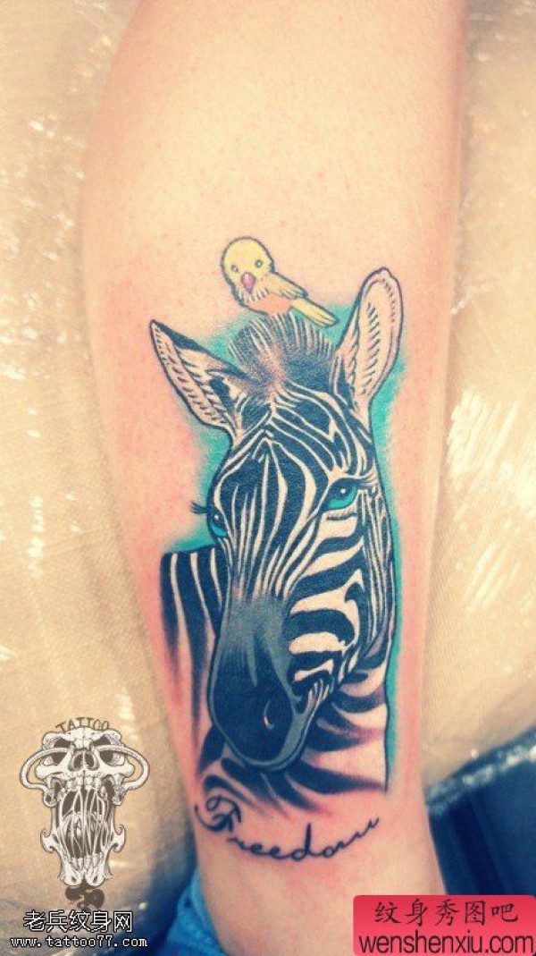 纹身图吧分享一张腿部斑马文身作品