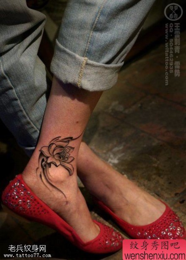 分享一款脚踝莲花纹身图案_脚部纹身图案大全_纹身图吧
