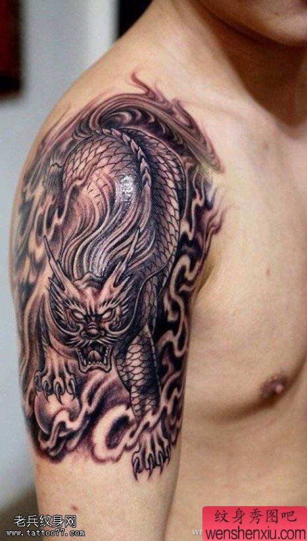 龙纹身手稿_一组老传统黑灰龙手稿纹身图案