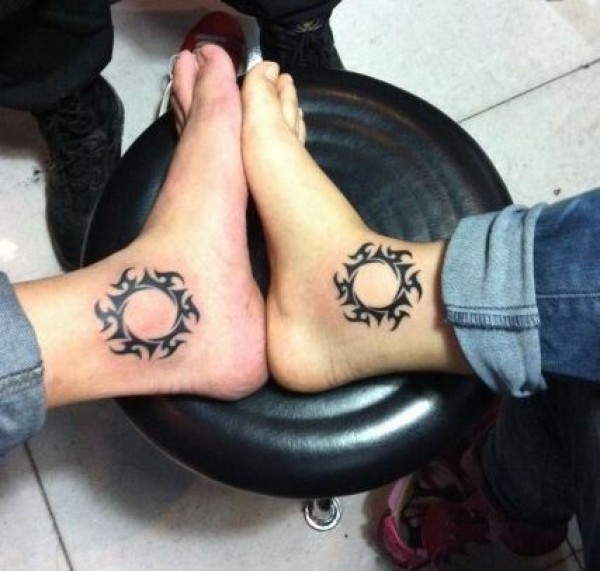 脚踝情侣图腾太阳纹身图案