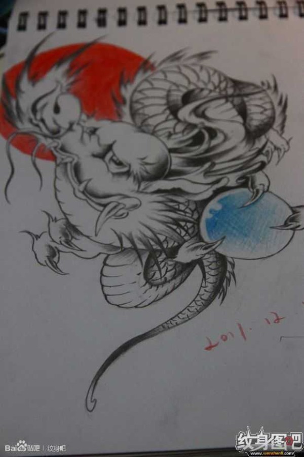 龙纹身手稿_一组老传统黑灰龙手稿纹身图案