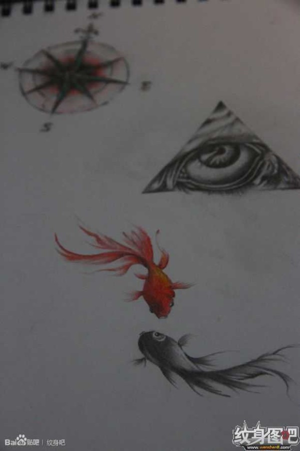 双鱼座纹身手稿_45张十二星座之双鱼手稿纹身图案