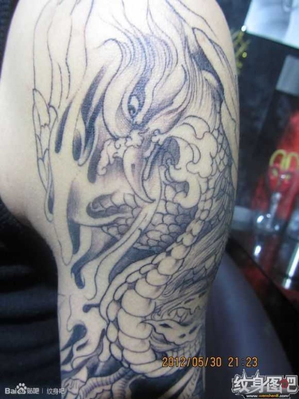 龙纹身手稿_一组老传统黑灰龙手稿纹身图案