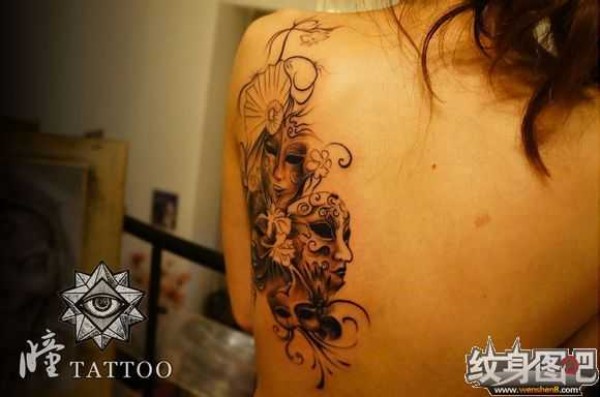 能面万媚纹身手稿_52张日式能剧面具纹身手稿图案素材欣赏