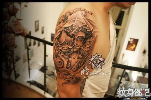 能面万媚纹身手稿_52张日式能剧面具纹身手稿图案素材欣赏