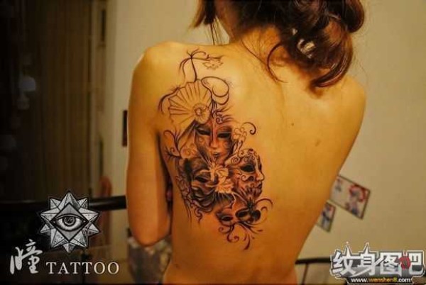 能面万媚纹身手稿_52张日式能剧面具纹身手稿图案素材欣赏