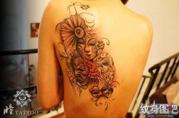 能面万媚纹身手稿_52张日式能剧面具纹身手稿图案素材欣赏