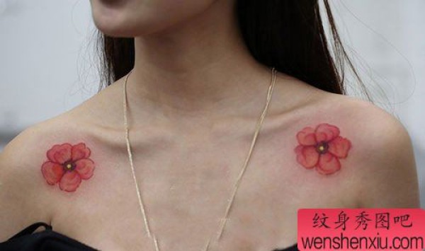 女生肩花纹身_15张女性双肩对称的肩花纹身图案作品图片