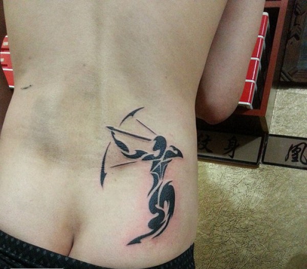 女生后腰纹身黑白灰风格抽象线条纹身图案