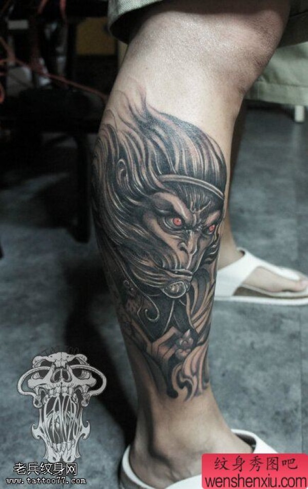 腿部孙悟空文身作品由纹身图吧分享