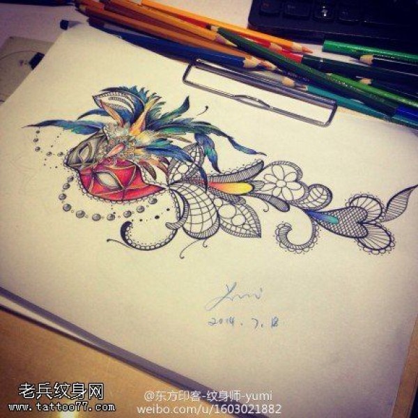 能面万媚纹身手稿_52张日式能剧面具纹身手稿图案素材欣赏