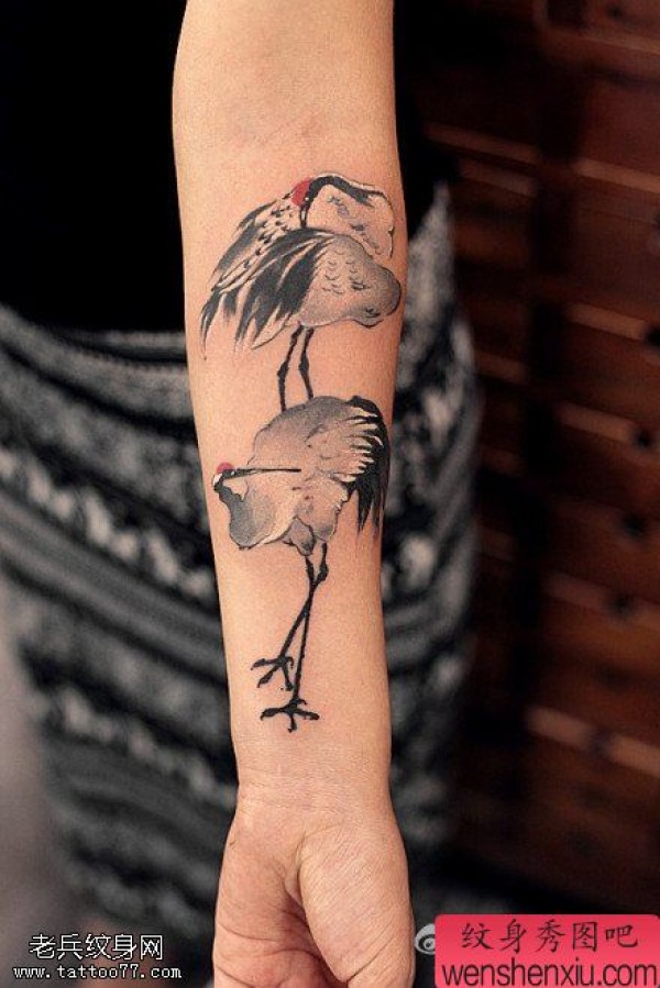 纹身图吧分享一张水墨仙鹤文身作品