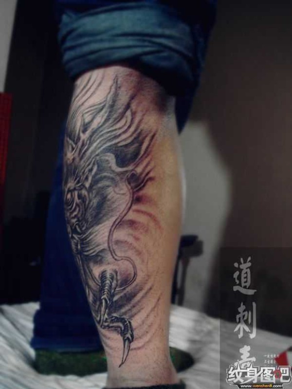 龙纹身手稿_一组老传统黑灰龙手稿纹身图案