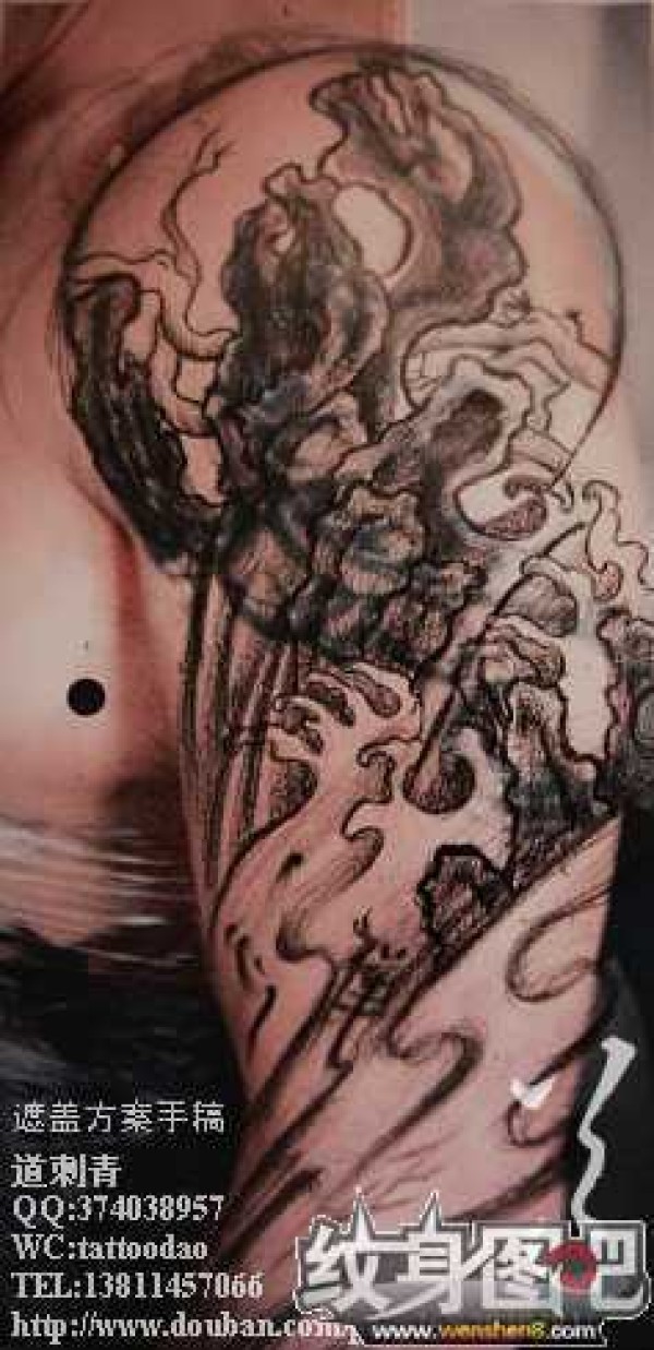 清新淡雅 北京newtattoo纹身店陈洁山水水墨纹身 (二) 99P