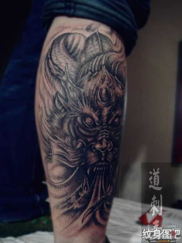 龙纹身手稿_一组老传统黑灰龙手稿纹身图案
