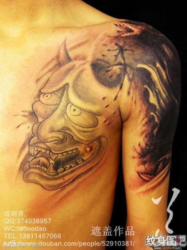 能面万媚纹身手稿_52张日式能剧面具纹身手稿图案素材欣赏