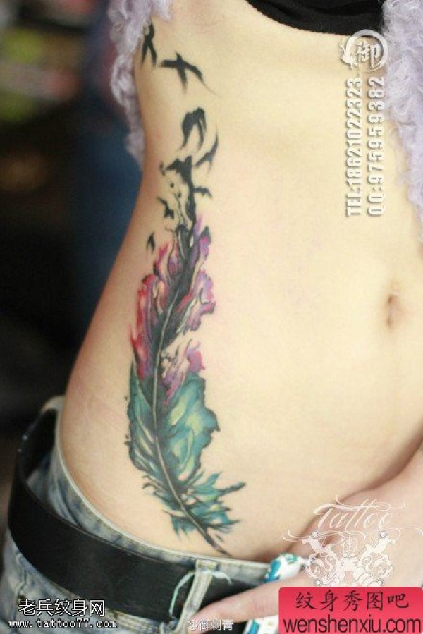 分享一款腰部时尚性感的蝶恋花纹身图案_腰部纹身图案大全_纹身图吧