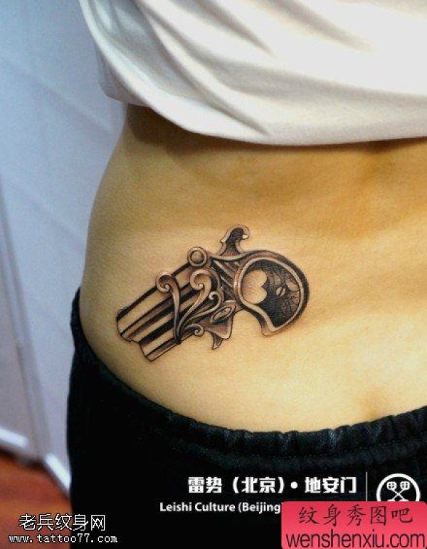 纹身图吧分享一张腰部手枪文身作品